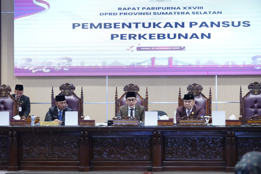 DPRD Provinsi Sumatera Selatan (Sumsel) menggelar Rapat Paripurna dengan agenda pembentukan Panitia Khusus (Pansus) Perkebunan di Ruang Rapat Paripurna DPRD Sumsel, Senin (1/12/2025).